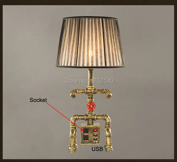 Product Name: Retro Eisen Wasserleitung Schreibtischlampe Leselampe Art Deco. Robot-förmigen Tischlampe Mit Buchse Funktion Und Usb-ladeanschluss