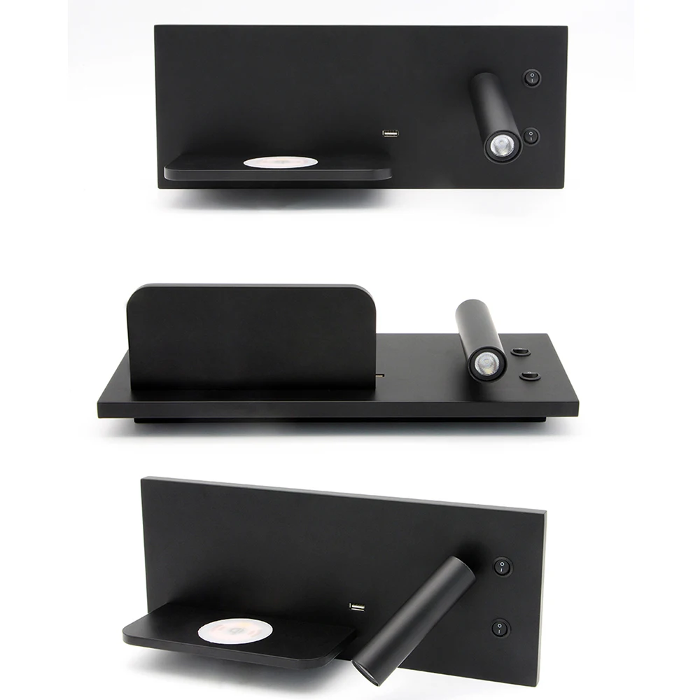 Product Name: Wand Licht Schlafzimmer Lampe Led Telefon Drahtlose Ladegerät Regal Kopfteil Schlafzimmer Lesen Moderne Loft Zimmer Usb Leuchte Holz Bett