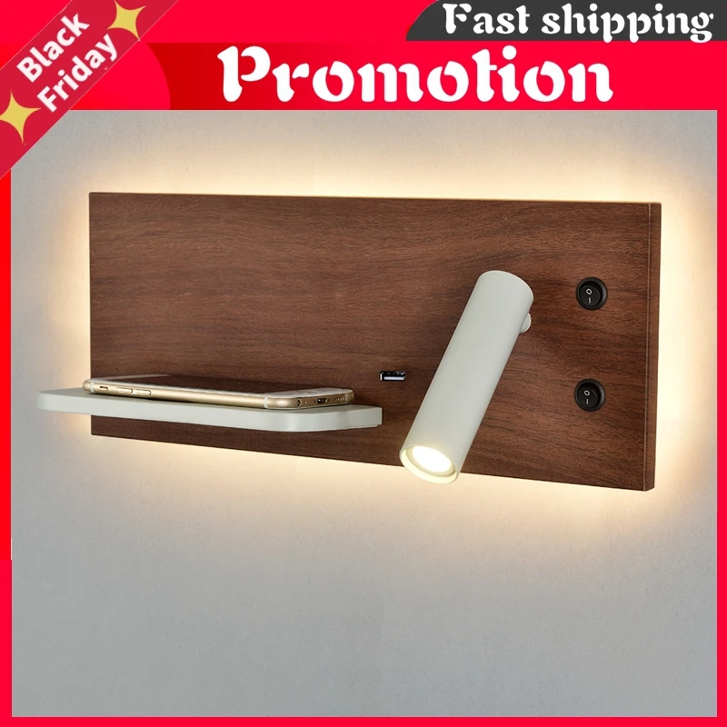 🌒(0%OFF) Verkaufen Wand Licht Schlafzimmer Lampe Led Telefon Drahtlose Ladegerät Regal Kopfteil Lesen Moderne Loft Zimmer Usb Leuchte Holz Bett Günstig